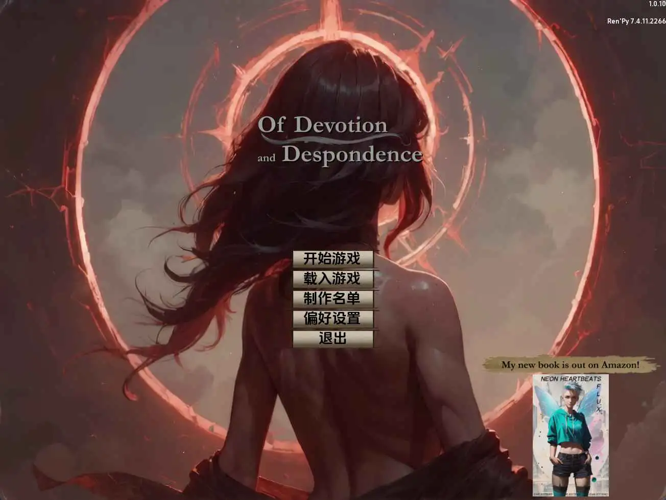 《奉献与绝望》是一款融合了大量角色扮演元素的视觉小说,讲述了一位被流放到一个动荡世界的男人的旅程。在这个世界里,人类被认为难以长久生存。游戏采用第一人称叙述,以成熟的文笔、浪漫的爱情和情色场景,讲述了一个充满情感的故事。
