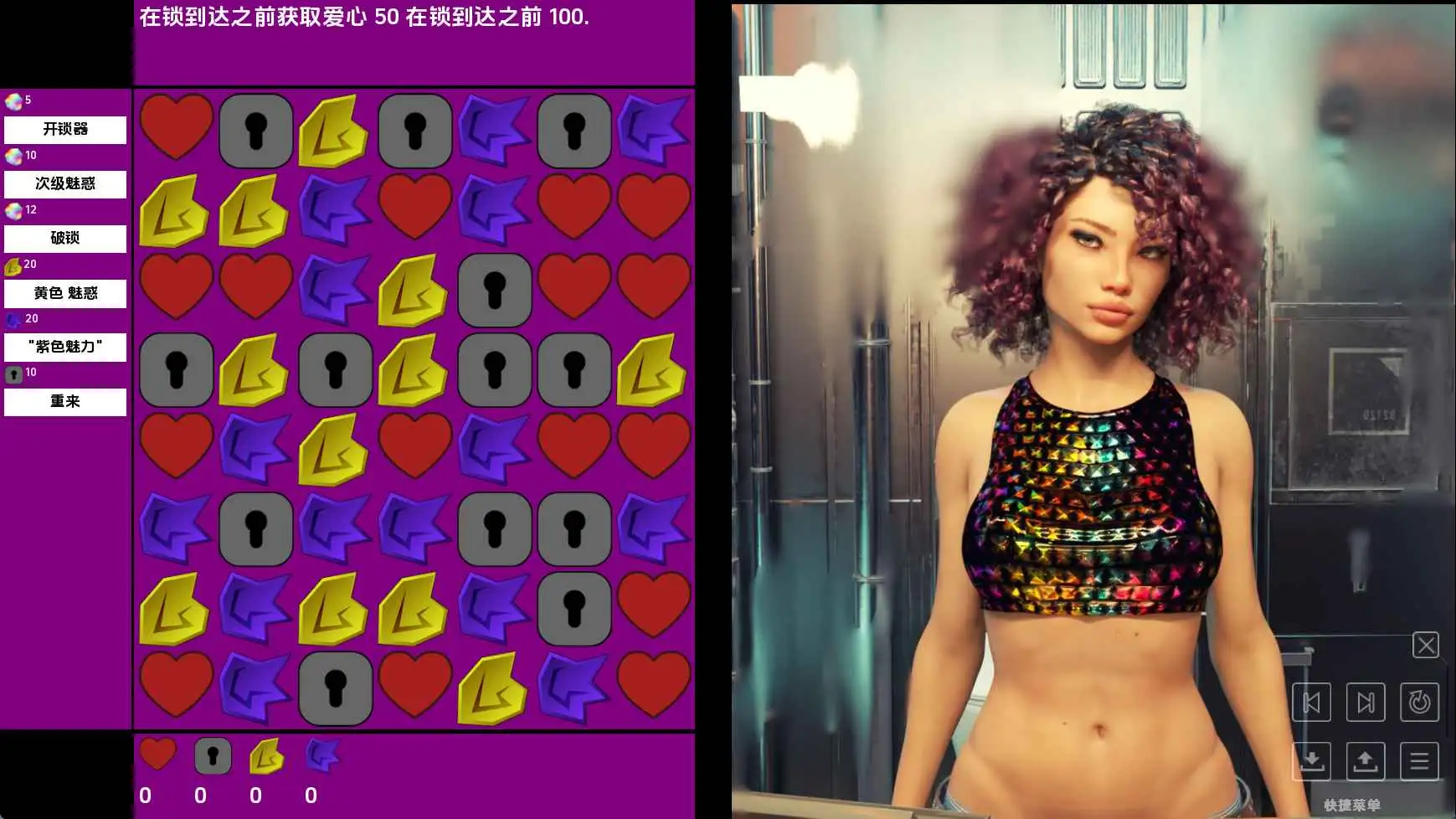 《谜题约会》是我在Mortze开发SWM期间写的一个副项目。它和我们其他游戏很不一样。虽然它包含多场性爱场景和一定的故事线,包括男性路线和女同性恋路线,但实际上它是一款Match3游戏,Match3部分是约会中发生事情的隐喻。睁大眼睛进去。