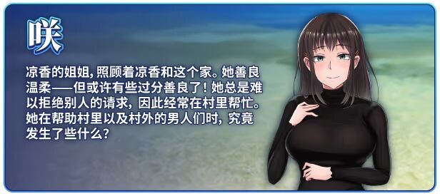 此外,“夏色泡影:After”中新增了一条路线:玩家可以操控咲,探索整个游戏地图,寻找能够帮助她拯救入喜村的特殊人物。