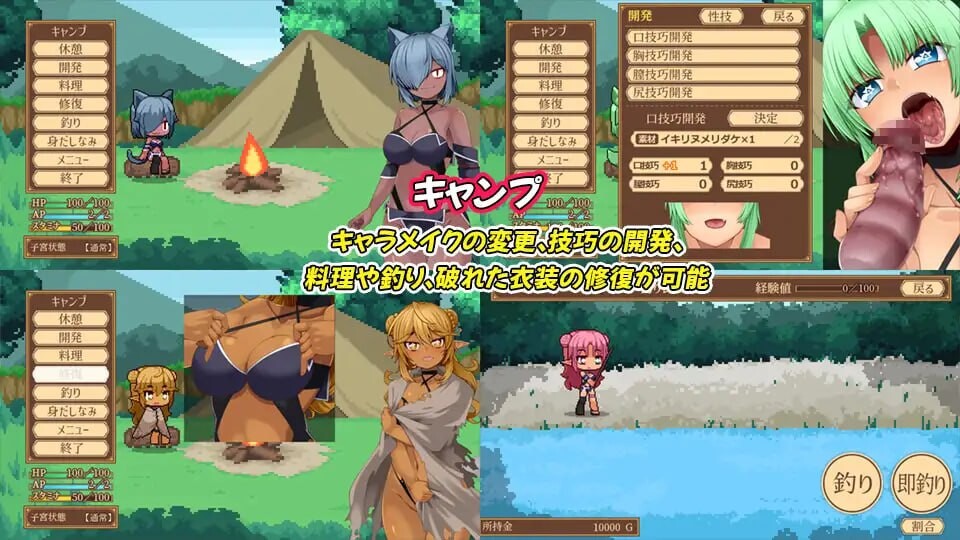 通过单一按键即可达成胜利或败北,战斗中遭侵犯、挑衅或自慰等CG均可浏览。