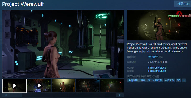 Project Werewulf是一款以女性为主角的3D第三人称成人生存恐怖游戏。
