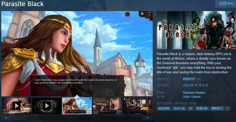 《Parasite Black》是一款成熟的黑暗奇幻RPG游戏,背景设置在名为Mirnos的世界中。