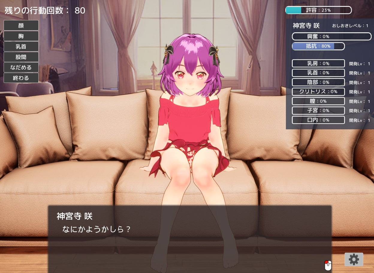 根据女主角的淘气状况和惩罚的进展情况,会开启新的关卡,女主角的态度也会发生变化。