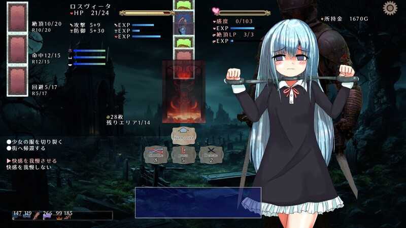 ■被当作盾牌的圣女罗斯维塔,一边忍受魔物的攻击、色情攻击、布置的陷阱一边在迷宫中前进。