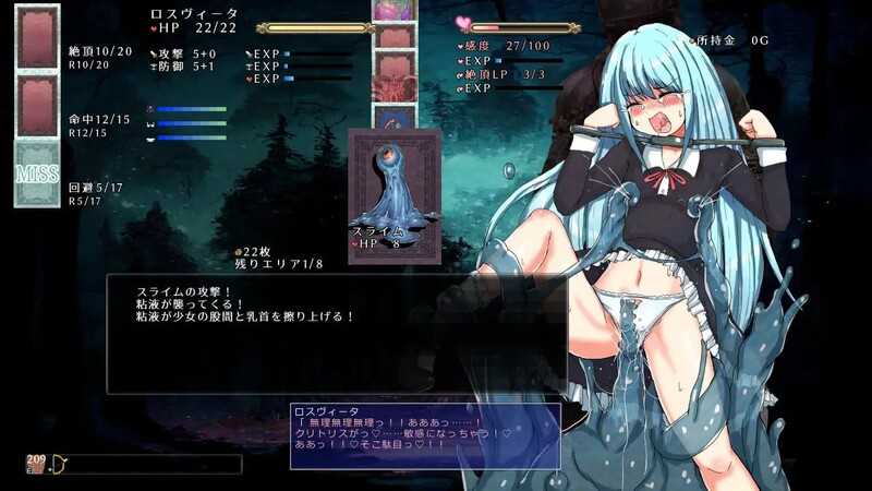 ■被当作盾牌的圣女罗斯维塔,一边忍受魔物的攻击、色情攻击、布置的陷阱一边在迷宫中前进。